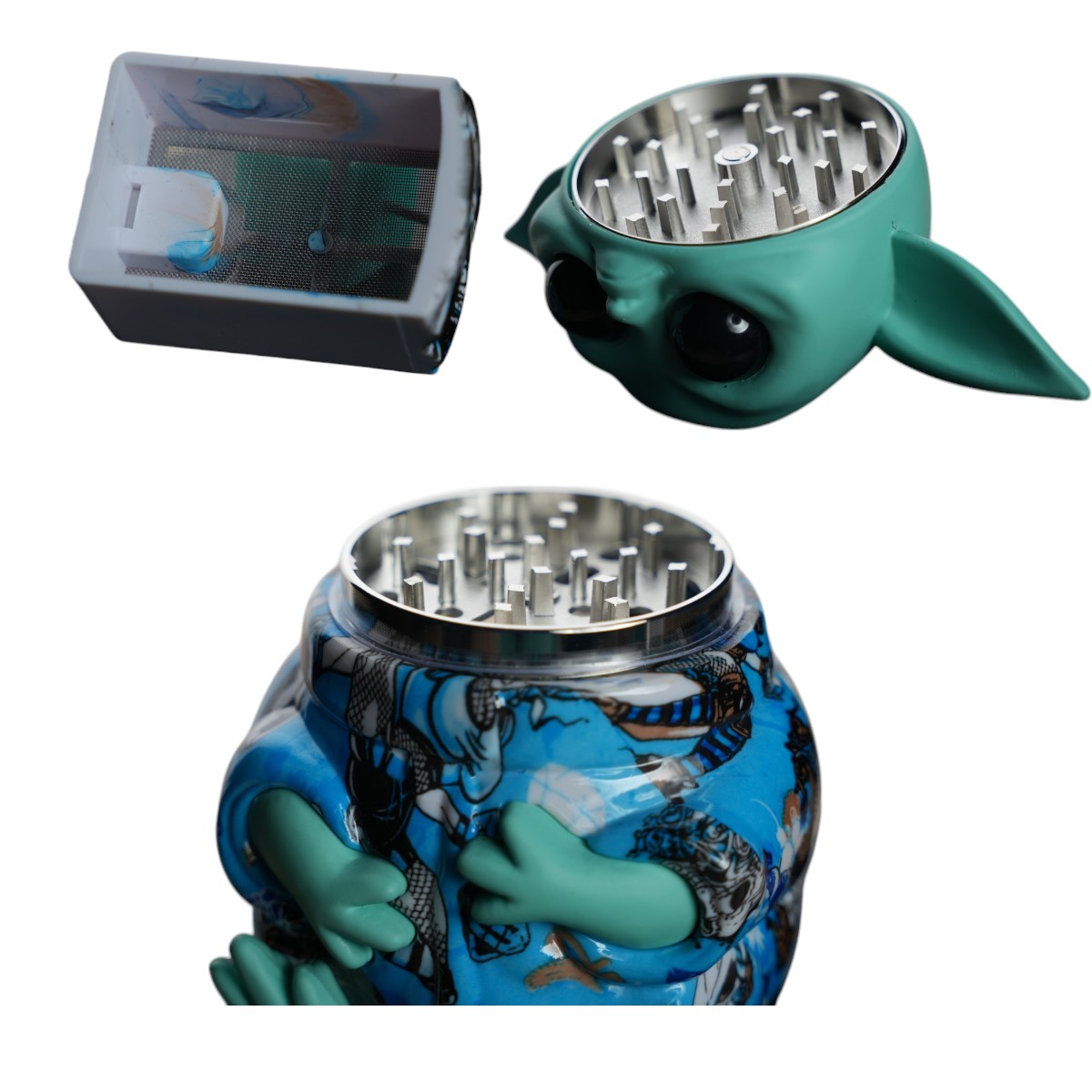 Mimo swojego charakterystycznego wyglądu, grinder Baby Yoda zachowuje kompaktowe wymiary, dzięki czemu idealnie mieści się w dłoni i kieszeni. Magnetyczne zamknięcie zapewnia bezpieczne przechowywanie ziół, a ergonomiczny kształt ułatwia mielenie nawet większych ilości materiału. Design został dopracowany tak, aby łączyć walory estetyczne z maksymalną funkcjonalnością.