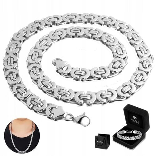 Łańcuch ten gwarantuje pełną niezawodność w noszeniu, dzięki splotowi królewskiemu (bizantyjskiemu), który łączy wytrzymałość z subtelną wizualną atrakcją. Elementy blokowe w zapięciu ułatwiają codzienne zakładanie i zdejmowanie, czyniąc go idealnym towarzyszem każdej okazji, bez obaw o przypadkowe uszkodzenia.