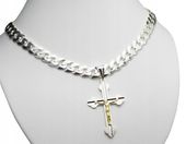 Komplet emanuje luksusem dzięki diamentowaniu łańcuszka, które nadaje mu lustrzany połysk i wyjątkową trwałość. Waga całego zestawu to 39,6 g (+/- 1 g), z krzyżykiem o wadze 2,6 g i wymiarach 46,4 x 23,8 mm, dostępnym w dwóch wersjach z pozłacaną 24-karatowym złotem pasyjką. To biżuteria, która zachowuje swój blask przez lata, niezależnie od okoliczności.