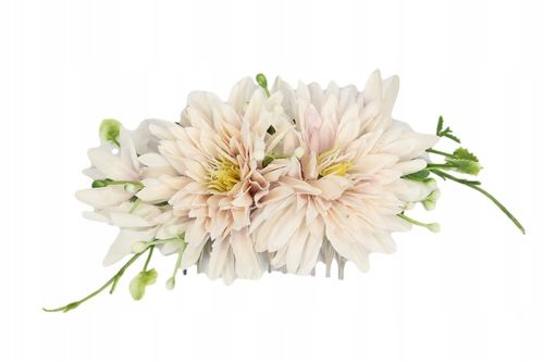 Ten wyjątkowy grzebyk do włosów to arcydzieło rękodzielnicze wykonane z najwyższą starannością i dbałością o każdy detal. Unikalne wzornictwo kwiatowych ozdób z pąków astrów, bluszczu i trawy tworzy niepowtarzalny design, który wyróżni Cię z tłumu.