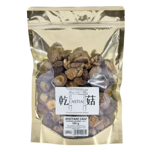 Opakowanie zawiera 100 g suszonych grzybów shiitake.