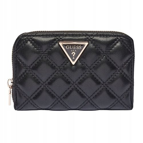Ten czarny portfel damski Guess model Giully QG967314 to kwintesencja elegancji i funkcjonalności, wykonany z wysokiej jakości skóry ekologicznej o pikowanym wykończeniu. Zamykany na solidny zamek z złotymi okuciami, zapewnia niezawodne zabezpieczenie przed zgubieniem zawartości, oferując wewnętrzną kieszeń na bilon, dwie przegrody na banknoty, cztery miejsca na karty oraz dwie kieszenie wsuwane – wszystko w kompaktowym, poziomym formacie idealnym dla wymagających kobiet.
