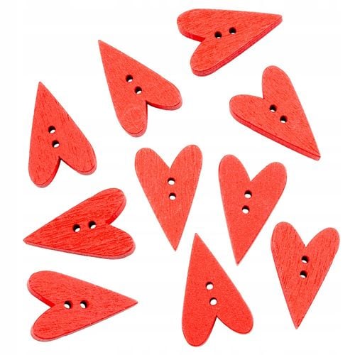 Guzik drewniany czerwony serce - 10 szt. w opakowaniu