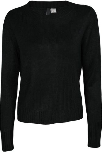 Czarny, lekki sweter marki H&M. Na długi rękaw, zakończony prążkowanym materiałem. Dekolt okrągły. Model oversize (luźny). Dół swetra zakończony prążkowanym materiałem.