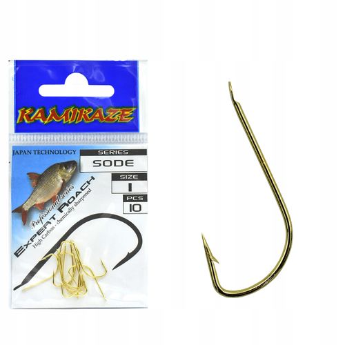 SODE - Profesjonalna seria bardzo mocnych i ostrych haczyków zakończonych łopatką w szerokiej gamie rozmiarów - (inne rozmiary dostępne na pozostałych aukcjach). Dedykowane do zbrojenia białych robaków oraz przynęt roślinnych. Chętnie wybierane przez wędkarzy do wędkowania wyczynowego.