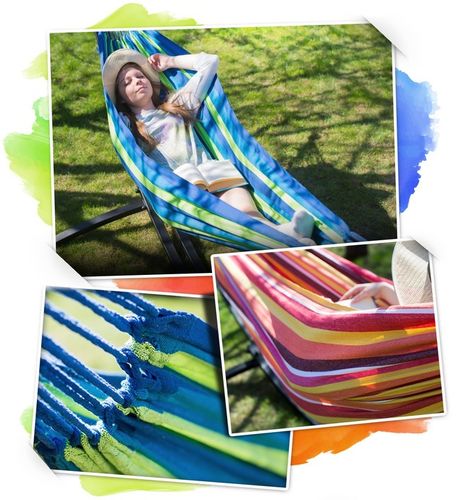 Wykonany z wytrzymałej mieszanki 65% bawełny i 35% poliestru, hamak ten jest odporny na przetarcia i działanie promieni słonecznych. Grubo plecione liny oraz solidna konstrukcja gwarantują bezpieczeństwo i stabilność, nawet przy maksymalnym obciążeniu do 100 kg.