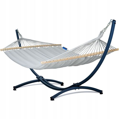 Stelaż wykonany z mocnego profilu stalowego o wymiarach 40x40 mm wytrzyma obciążenie do 220 kg, zapewniając maksymalną stabilność i bezpieczeństwo. Możliwość szybkiego montażu i demontażu w zaledwie 10 minut sprawia, że hamak może towarzyszyć Ci wszędzie – od ogrodu po kemping czy wycieczki.