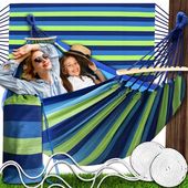 Ten hamak jest produktem godnym zaufania - wykonany z wysokiej jakości materiałów, takich jak bawełna z dodatkiem poliestru, posiada wzmocnioną konstrukcję i grube linki. Dodatkowo, hamak jest łatwy do przechowywania i transportu - dostarczany jest z wygodnym pokrowcem, co gwarantuje bezpieczeństwo i łatwość przenoszenia.