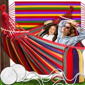 Hamak został zaprojektowany z myślą o maksymalnej wygodzie dwóch osób. Jego przestronne wymiary i maksymalne obciążenie do 230 kg pozwalają cieszyć się relaksem bez ograniczeń, zapewniając pełną swobodę ruchów i poczucie bezpieczeństwa.