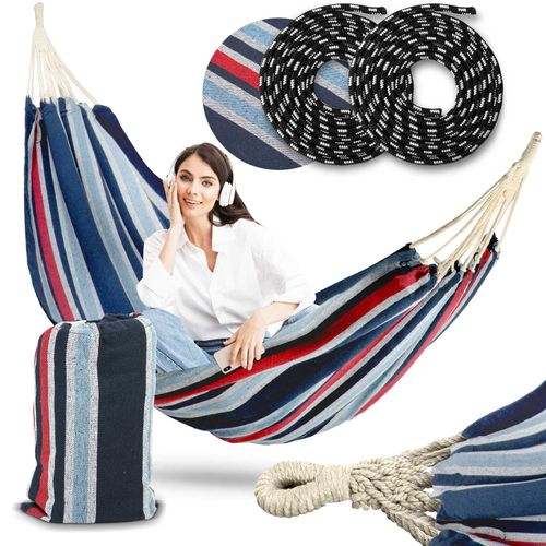 Hamak Malaga Doble to nie tylko praktyczny produkt, ale również wygodne miejsce, które możesz zabrać ze sobą wszędzie. Atrakcyjna kombinacja kolorów niebiesko-czerwonego przyciąga wzrok, dzięki czemu hamak staje się modnym dodatkiem do każdego ogrodu czy przestrzeni wypoczynkowej. Z łatwością możesz przywiązać jego krańce do drzew, słupków lub skorzystać z opcjonalnego stelaża, co daje możliwość korzystania z hamaka w różnych lokalizacjach – w ogrodzie, na plaży, a nawet w domu!