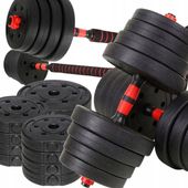 Zestaw wyróżnia się wytrzymałymi gryfami i obciążeniami bitumicznymi o wysokiej jakości. Powłoka z tworzywa sztucznego zapewnia trwałość i bezpieczeństwo podczas użytkowania. To gwarancja niezawodnego sprzętu, który posłuży Ci przez długie lata.
