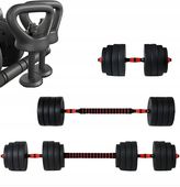 ✔️ Kompletny zestaw z hantlami, kettlebellem, łącznikiem i zaciskami - wszystko czego potrzebujesz do efektywnego treningu w domu.