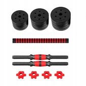 Ten zestaw został wykonany z najwyższej jakości materiałów. Wewnętrzne wypełnienie cementowe wzmocnione proszkiem mineralnym zapewnia ponadprzeciętną wytrzymałość, a gryfy ze stali nierdzewnej z powłoką z tworzywa PP gwarantują długotrwałe użytkowanie. Mocne zaciski blokują ciężary przed zsunięciem się.