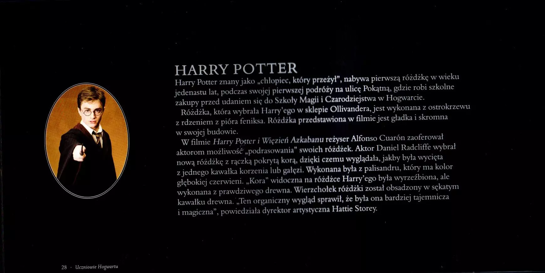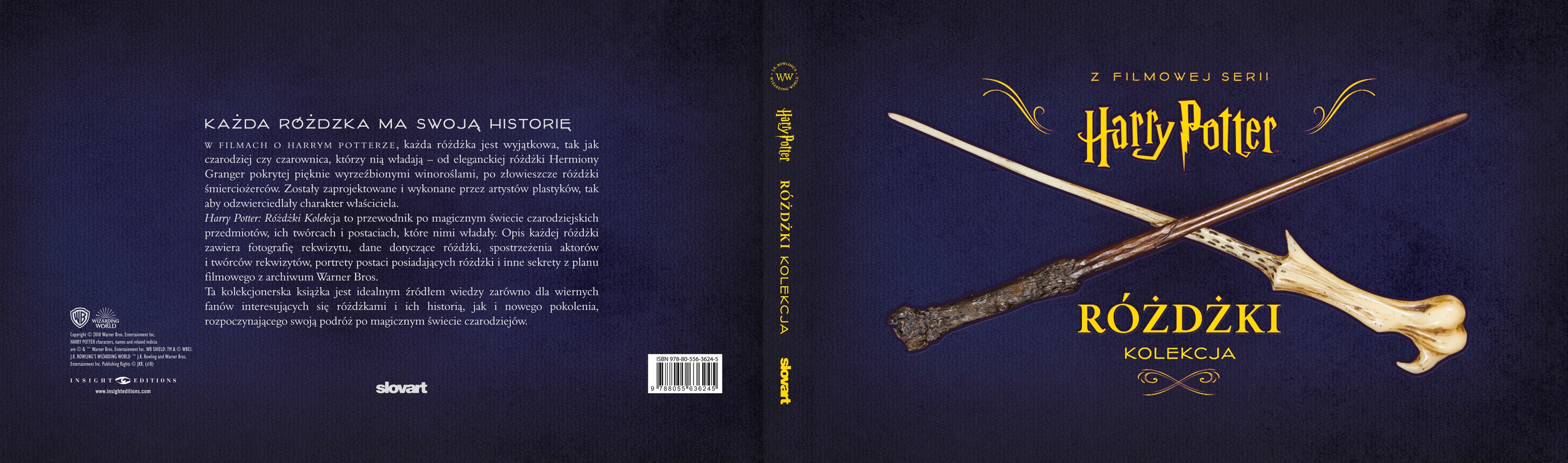 W filmach o Harrym Potterze, każda różdżka jest wyjątkowa, tak jak czarodziej czy czarownica, którzy nią władają – od eleganckiej różdżki Hermiony Granger, pokrytej pięknie wyrzeźbionymi winoroślami, po złowieszcze różdżki śmierciożerców. Zostały zaprojektowane i wykonane przez artystów plastyków tak, aby odzwierciedlały charakter właściciela. Harry Potter. Różdżki. Kolekcja to przewodnik po magicznym świecie czarodziejskich przedmiotów, ich twórcach i postaciach, które nimi władały. Opis każdej różdżki zawiera fotografię rekwizytu, dane dotyczące różdżki, spostrzeżenia aktorów i twórców rekwizytów, portrety postaci posiadających różdżki i inne sekrety z planu filmowego z Warner Bros. Ta kolekcjonerska książka jest idealnym źródłem wiedzy zarówno dla wiernych fanów interesujących się różdżkami i ich historią, jak i nowego pokolenia, rozpoczynającego swoją podróż po magicznym świecie czarodziejów.
