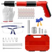 Kompletny zestaw z 200 gwoźdźmi, goglami, zatyczkami do uszu, rękawiczkami, szczotką, kluczem i skrzynką narzędziową uzupełnia praktyczność. Łatwe czyszczenie poprzez kompresję tulei i szybka penetracja w 0,1 s czynią go narzędziem, które usprawnia każdy projekt – od renowacji domu po instalacje hydrauliczne i elektryczne.
