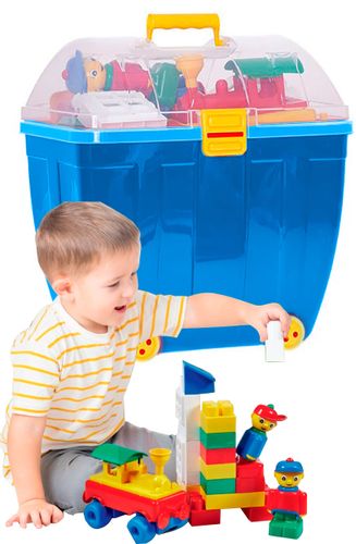 Kreatywne budowanie dostępne w poręcznym kuferku. Z blisko 100 elementów można wyczarować wiele ciekawych budowli i konstrukcji. Dzięki dołączonym drzwiom i oknom budynki stają się realistyczne. Samochody pomogą w transporcie materiałów budowlanych i nie tylko...