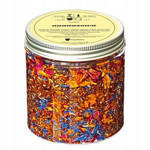 Dzięki całkowitemu brakowi kofeiny ta tropikalna herbata jest idealnym wyborem na wieczorne chwile odpoczynku lub popołudniowe relaksujące przerwy. Egzotyczny smak ananasa z subtelną nutą wanilii przenosi zmysły w tropikalny raj, zapewniając głębokie odprężenie i ukojenie po intensywnym dniu.