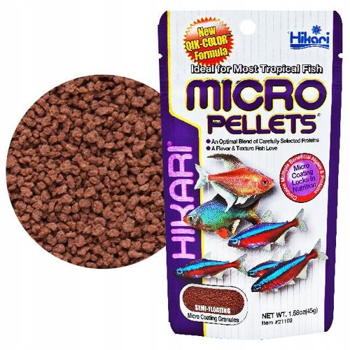 Wysokiej jakości pokarm Hikari Micro Pellets 45g został opracowany specjalnie dla małych wszystkożernych ryb akwariowych. Dzięki starannie zbilansowanej recepturze, zawierającej wszystkie niezbędne składniki odżywcze, zapewnia Twoim podopiecznym pełnowartościowe i zdrowe odżywianie.
