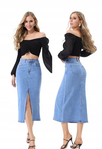Spódnica jeansowa o prostym kroju i rozcięciem z przodu. Must Have w szafie każdej stylowej Kobiety. Spódnica posiada długość midi, idealnie sprawdzi się w stylizacjach na co dzień lub bardziej eleganckich. Pasują do niej każde dodatki. Materiał bardzo fajnie poddający się. Świetnie wygląda z koszulą czy crop topami.