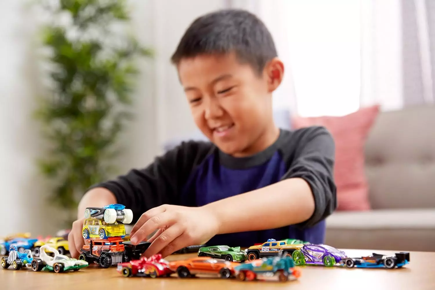 Hot Wheels przekracza granice od 1968 roku, z pasją tworząc najfajniejsze i najbardziej szalone samochodziki i tory dla nieustającej zabawy. Te gotowe do wyścigów zestawy 8 samochodów zawierają bardzo szczegółowe pojazdy wybrane z puli głównej i różnych, a w każdym zestawie znajduje się jeden ekskluzywny Hot Wheels. Różne mieszanki wydawane w ciągu roku sprawiają, że wybór jest świeży i nowy. Każdy zestaw jest sprzedawany osobno. Pojazdy, kolory i dekoracje mogą się różnić.