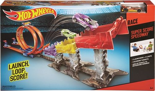 Zestaw Rekordowy wyścig od Hot Wheels to mnóstwo odjazdowej zabawy w skoki i liczenie punktów! Urządź prawdziwe zawody dla swoich samochodów Hot Wheels! W zestawie znajduje się wyścigowy tor z dwoma pętlami oraz aż trzema specjalnymi