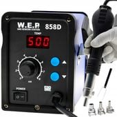 Ta stacja lutownicza HOTAIR WEP 858D wyróżnia się solidną konstrukcją opartą na transformatorze, co zapewnia galwaniczną separację od sieci 230V i stabilną pracę bez drgań. Z wagą 1,38 kg stoi pewnie na stole, a regulacja temperatury od 100°C do 500°C pozwala na precyzyjne dostosowanie do każdego zadania, od lutowania elementów elektronicznych po spawanie plastików.