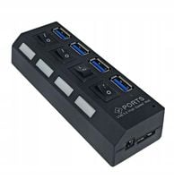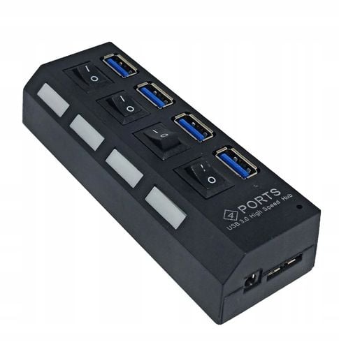 Uniwersalny 4-portowy hub USB 3.0 o kompaktowej konstrukcji, z kablem USB o długości 60 cm.