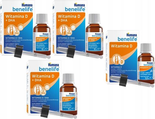 Humana Benelife Witamina D3 + DHA to wysokiej jakości suplement diety specjalnie opracowany z myślą o najmłodszych. Unikalna kompozycja witaminy D3 i cennych kwasów DHA wspomaga prawidłowy rozwój kości oraz wspiera pracę mózgu malucha.