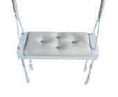 Oferujemy Państwu nową malowaną na biało huśtawkę siedzisko na piance o grubości 3cm. Huśtawka wykonana jest z drewna malowanego na biało oraz z mięciutkiego siedziska wykończonego materiałem pluszowym. Huśtawkę wykonujemy samodzielnie. Jest to produkt polski.