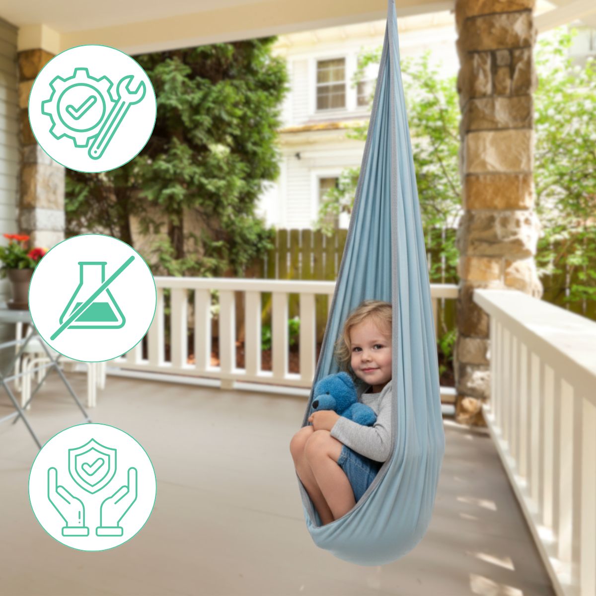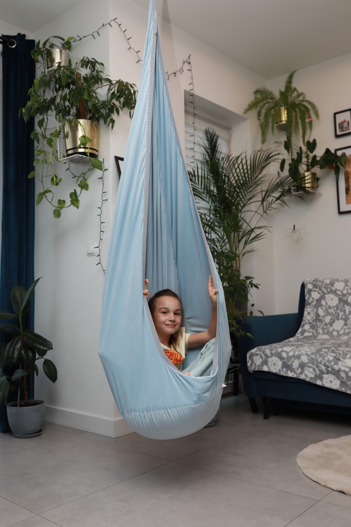Huśtawka kokon w pokoju dzieci jest prawdziwym hitem wnętrzarskim, również ona ma korzystny wpływ na rozwój maluchów. Zawsze warto mieć w domu zabawkę, jaka pomoże spożytkować drzemiące w dzieciach siły. Doskonałym rozwiązaniem w tym przypadku jest huśtawka fotel zawieszany. W pokoju dzieci może być strefą zabawy i wyciszenia. Huśtawka może być zawieszana na haku sufitowym, ogrodowym placu zabaw bądź drabinkach gimnastycznych.