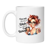 Jeśli masz silny charakter, cięty język i nie boisz się mówić wprost, ten kubek jest dla Ciebie! Napis "I'm not always a bitch. Sometimes I'm asleep." idealnie oddaje ducha osób, które nie przebierają w słowach, ale robią to z urokiem i humorem. Doskonały dla tych, którzy potrafią śmiać się z siebie i nie przejmują się opinią innych.