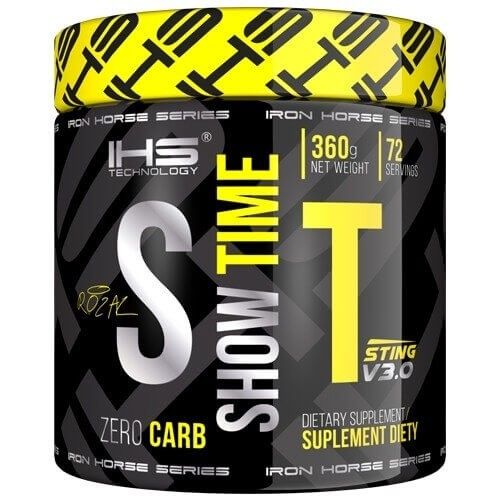 Show Time v3.0 jest przedtreningówką kompletną i uniwersalną. Tauryna, guarana, ekstrakt z Yerba Mate, hupercyna A i kofeina dodadzą nam energii już po kilkunastu minutach od zażycia produktu IHS. Zwiększą również koncentracje i skupienie podczas treningu. Dzięki dodatkom AAKG nasze serce i mięśnie będą jeszcze bardziej dotlenione poprzez zwiększenie syntezy azotu we krwi, co pozwoli nam wejść na jeszcze wyższy poziom treningu. Bardzo ważnym dodatkiem do tego zestawu jest 1,6g beta alaniny, który poprawi wytrzymałość całego organizmu, tym samym stymulując go do jeszcze lepszego działania. Karnozyna zawarta w beta alaninie zadba też o właściwe Ph w naszym mięśniu w trakcie i po treningu. Dzięki temu można będzie skrócić czas regeneracji i zwiększyć anabolizm mięśni.