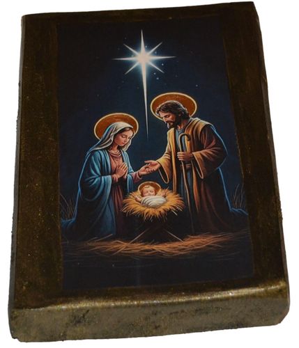 Współczesna ikona na drewnie o wymiarach ok.20,5 cm x 13,5 cm x 3 cm, . Ikona zabezpieczona lakierem i werniksem szelakowym w połączeniu własnej metody transferu na japońskim papierze umożliwia uzyskanie ciekawego efektu nanoszenia obrazu. Widoczne spękania, nierówności, wgłębienia, są zamierzone i celowe z tyłu zawieszka do powieszenia.Na życzenie dedykacja umieszczona na odwrocie reliefem wypukłym gratis.