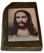 Współczesna ikona na drewnie o wymiarach ok.26,5 cm x 18 cm x 2,5 cm, . Ikona zabezpieczona lakierem i werniksem szelakowym w połączeniu własnej metody transferu na japońskim papierze umożliwia uzyskanie ciekawego efektu nanoszenia obrazu. Widoczne spękania, nierówności, wgłębienia, są zamierzone i celowe z tyłu zawieszka do powieszenia.Na życzenie dedykacja umieszczona na odwrocie reliefem wypukłym gratis.