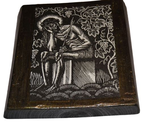 Współczesna ikona na drewnie o wymiarach ok.21 cm x 18 cm x 3 cm, . Ikona zabezpieczona lakierem i werniksem szelakowym w połączeniu własnej metody transferu na japońskim papierze umożliwia uzyskanie ciekawego efektu nanoszenia obrazu. Widoczne spękania, nierówności, wgłębienia, są zamierzone i celowe z tyłu zawieszka do powieszenia.Na życzenie dedykacja umieszczona na odwrocie reliefem wypukłym gratis.