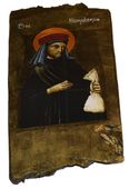 Współczesna ikona na drewnie o wymiarach ok.18,5 cm x 34 cm x 2,5 cm, . Ikona zabezpieczona lakierem i werniksem szelakowym w połączeniu własnej metody transferu na japońskim papierze umożliwia uzyskanie ciekawego efektu nanoszenia obrazu. Widoczne spękania, nierówności, wgłębienia, są zamierzone i celowe z tyłu zawieszka do powieszenia.Na życzenie dedykacja umieszczona na odwrocie reliefem wypukłym gratis.