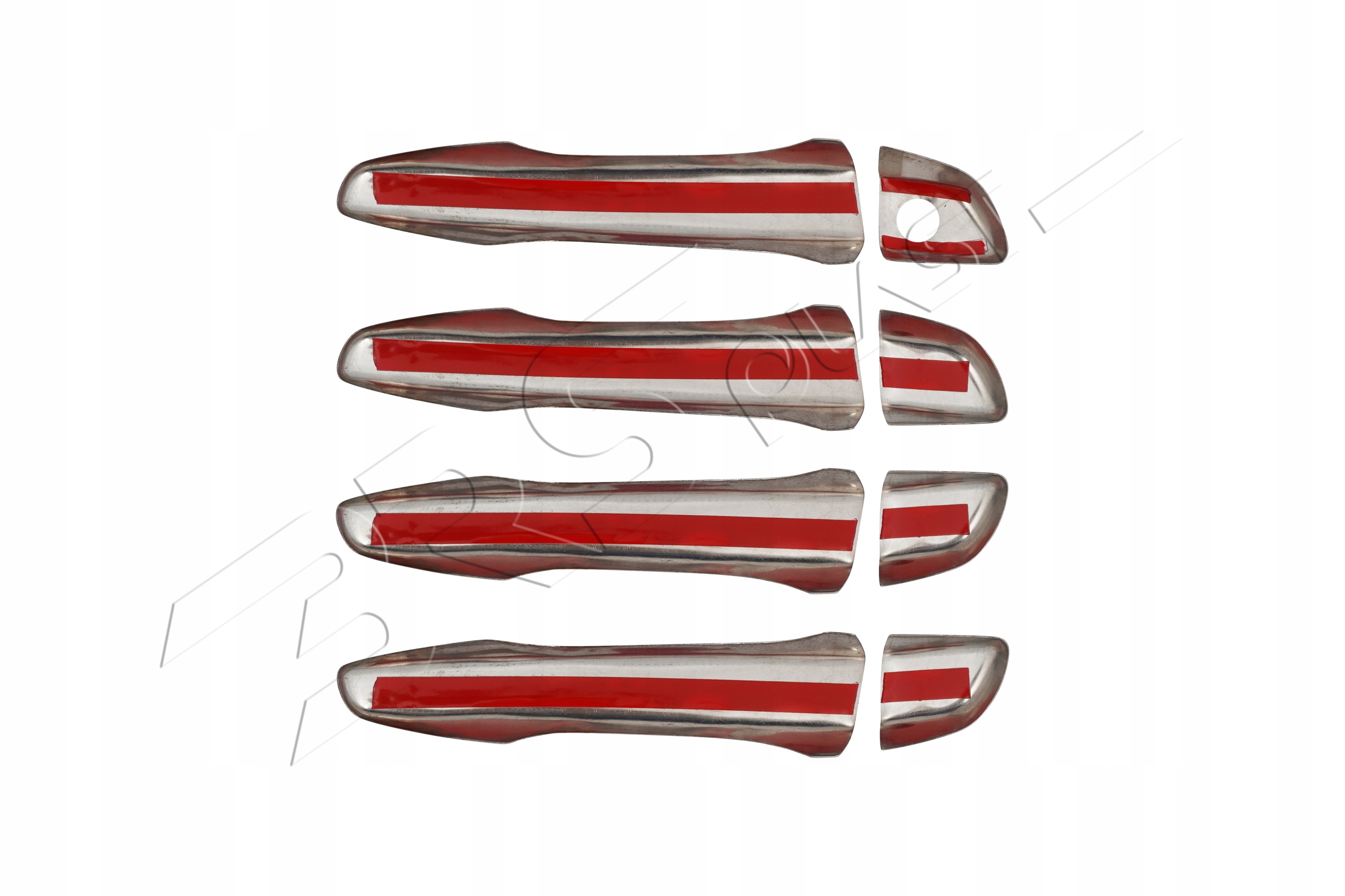 Zestaw 4 sztuk nakładek na klamki wykonanych z najwyższej jakości stali nierdzewnej z wykończeniem chromowanym — idealne, by odświeżyć wygląd drzwi i nadać im elegancki, nowoczesny charakter.