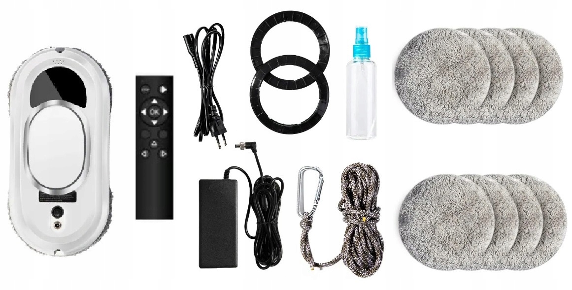 Zestaw zawiera linkę zabezpieczającą, którą warto przymocować do robota podczas pracy (klamrę zabezpieczającą można przypiąć do klamki od okna lub poręczy), zapewniając mu najwyższą ochronę. Linka może dodatkowo posłużyć do delikatnego ściągnięcia robota w razie jego zatrzymania w niedostępnym miejscu.
