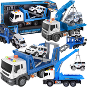 Ruchome elementy: Ciężarówka jest wyposażona w ruchome elementy, które umożliwiają dziecku aktywną zabawę. Ten pojazd posiada obrotowe koła oraz możliwość poruszania hakiem i zmianę naczepy na lawetę z podjazdem, co umożliwia symulowanie pracy zawodowego kierowcy ciężarówki.