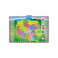 Innowacyjna Mapa Polski, która dostarcza wiedzy na temat naszego kraju. Posiada panel dotykowy z aktywnymi ikonkami, pod którymi kryją się informacje dotyczące historii i geografii, a nawet polski hymn - Mazurek Dąbrowskiego! Mapa nie tylko uczy, ale też bawi. W trybie quiz dla najmłodszych Dzieci będą musiały wskazać właściwe położenie polskich miast. Trudniejsza wersja testu , zatytułowana Super Quiz, pozwoli całej rodzinie włączyć się w emocjonującą rozgrywkę. Jej celem jest udzielenie poprawnej odpowiedzi na pytania z zakresu herbów, znanych osób, budowli i polskich miast. Mapę można zawiesić na ścianie albo bawić się nią na podłodze. Najważniejsze, aby było Wam wygodnie! Produkt przeznaczony jest dla graczy od szóstego roku życia.