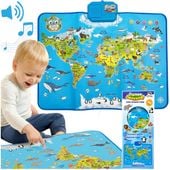 Ta kolorowa, dotykowa mata przenosi dziecko w świat zwierząt z całej planety. Wystarczy nacisnąć obrazek, a mata odtworzy odgłosy, ciekawostki lub pytania z gry. Nauka geografii, zoologii i spostrzegawczości staje się czystą zabawą!