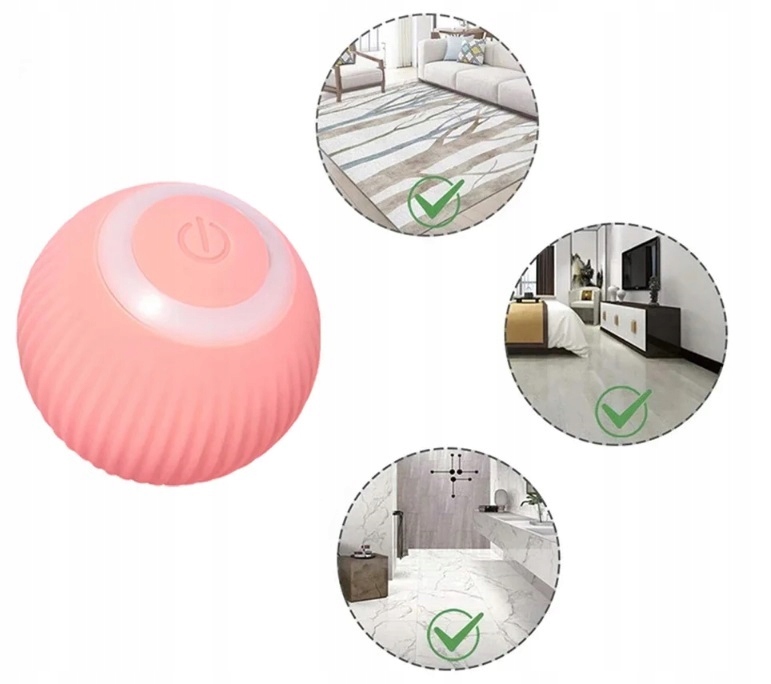 Zabawka włącza się za pomocą jednego dotknięcia przycisku. Może być ona włączona przez właściciela lub kota podczas zabawy. Po włączeniu piłka sama zacznie się poruszać, aktywując kota do ruchu. Dzięki dwóm trybom działania można dostosować zabawkę do aktywności naszego pupila.