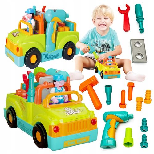 1✔️Interaktywne funkcje: napęd, oświetlenie i dźwięki w pojeździe, wkrętarka na baterie z obrotami w obu kierunkach.