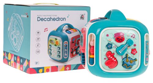 | Interaktywny box z efektami dźwięku i światła dla dzieci od 3-go roku życia. Każda ścianka boxu zapewni dziecku wiele frajdy i interaktywnej zabawy. Różnorodne efekty dźwiękowe i świetlne oraz bogactwo kolorów, przyciągnie wzrok maluszka i zachęci do zabawy. Zabawka zasilana jest bateriami typu 3 x AA 1,5 V (brak w zestawie). Opis ścianek boxu: - ścianka muzyczna z gitarą, saksofonem, bębnem i dwoma gwiazdkami. Naciskając na poszczególne elementy, dziecko usłyszy po 5 podkładów muzycznych z gitarą, saksofonem, bębnem, uspokajających melodii, jest też gwiazdka do zmiany trybów fortepianu znajdującego się na górze boksu. - ścianka z telefonikiem Na tej ściance znajduje się wyjmowany telefonik z grzechotką. Klawisze w kształcie serduszka z rysunkami pojazdów lądowych czy morskich i z rysunkami zwierzątek oraz klawisze numeryczne od 0 do 9. Naciskając np. klawisz z serduszkiem i rysunkiem łodzi, usłyszymy jego nazwę i dźwięk, jaki wydaje ten pojazd. Klawisz z żółtym napisem uruchamia tryb liczb, odgłosy wyboru numerów lub wesołe melodie, a klawisz z niebieskim napisem uruchamia odgłos dzwonka telefonu lub wyjście z trybu rozmowy. - ścianka z traktorkiem Na tej ściance mamy regulację głośności oraz 2 kółka zębate, które kręcą się w przeciwnych kierunkach. - ścianka ze słoneczkiem i wiatrakiem Na tej ściance mamy przycisk ze słoneczkiem, po naciśnięciu na niego odtwarzamy 3 melodie, możemy też kręcić ruchomym wiatraczkiem. - ścianka górna z pianinkiem. Naciskając na poszczególne klawisze, możemy odtwarzać melodie. Klawisze mają dużą czułość, wystarczy delikatny nacisk paluszka. Mamy 3 tryby fortepianu. Tryb skali, tryb odtwarzania losowego (7 utworów), tryb odtwarzania muzyki (7 utworów). Na tej ściance znajduje się również mikser oraz rączka do przenoszenia. - po bokach kostki znajdują się pałąki z obrotowymi elementami do ćwiczenia paluszków dziecka. Funkcje zabawki: - odpowiednia dla dzieci od 3-go roku życia, - wykonana z najlepszej jakości plastiku w żywych kolorach, - zasilana bateriami 3 x AA 1,5 V (brak w zestawie), - efekty dźwiękowe: odgłos miksera, wesołe piosenki, melodie, odgłos nut, odgłosy zwierząt, pojazdów, nazw liczb, odgłos kręcenia kół zębatych, nazwy zwierząt i pojazdów, liczb, - efekty świetlne: podświetlany bębenek, podświetlane klawisze pianinka, - wygodna rączka do przenoszenia, - nauka kolorów, kształtów, nazw przedmiotów, - trening dla malutkich paluszków dziecka. |