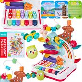 Ta wielofunkcyjna, edukacyjna zabawka łączy w sobie wiele elementów stymulujących różne obszary rozwoju malucha. Pianinko uczy koordynacji wzrokowo-ruchowej i wrażliwości muzycznej, a magnetyczny dzięcioł wspomaga koncentrację i precyzję ruchów.