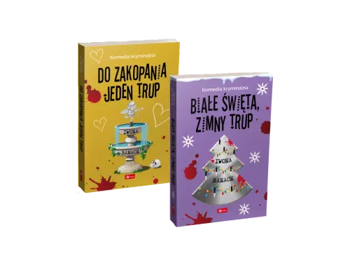 BIAŁĘ ŚWIĘTA ZIMNY TRUP: IWONA BANACH : Emilię Gałązkę ogarnia szał świątecznych przygotowań. Dzielna prepperka za pomocą spawarki i lutownicy usiłuje wykonać niezniszczalną choinkę z… ostrzy pił i gwoździ.Magda, która właśnie została mamą, postanowiła przenieść rodzinną imprezę do domu, z daleka od zabójczej choinki. Tam mieszka Paweł z Simoną i… znalezione zostają zwłoki. Na domiar złego okazuje się, że w okolicy grasuje wilkołak. Nikt (poza Emilią) nie spodziewa się kataklizmu, jednak natura bywa nieprzewidywalna, tak jak świąteczne nastroje… Dziwna kobieta z lasu szuka dawno zaginionej siostry, a jamniczka Luna szaleje z Rafaelem – psem Emilii, którego też musieli zabrać na święta. Czy metalowa choinka okaże się zabójczą Kto kryje się pod postacią wilkołakaI czy w wigilię oprócz padającego śniegu, może padać coś jeszcze Jedno jest pewne: te święta, nie będą takie jak zawsze. Będą katastrofalnie prawdziwe DO ZAKOPANIA JEDEN TRUP : Kontynuacja bestsellerowej "Serii z trupem". Emilia Gałązka otrzymuje dokumenty uprawniające ją do spadku po zamordowanej Amerykance. Cierpiąca na depresję z powodu braku końca świata kobieta nie jest zainteresowana pieniędzmi. Magda jest w ciąży i nadal planuje otworzyć swoją agencję detektywistyczną. Emilia postanawia więc pomóc siostrzenicy, podejmując spadek. W tym celu musi jednak spełnić wymagania spadkodawczyni. Wyjeżdża na trzy tygodnie do ośrodka „Jesienny Płomień”, aktywizującego bogate seniorki. Jak się okazuje, można tam znaleźć nie tylko zamożne panie, którym płatni podrywacze zapewniają porywy serc, ale także... zwłoki. Co z całą sprawą ma wspólnego ekscentryczny zwolennik teorii płaskiej Ziemi? Ile prawdy jest w krążącej po okolicy legendzie o duchu wisielca?