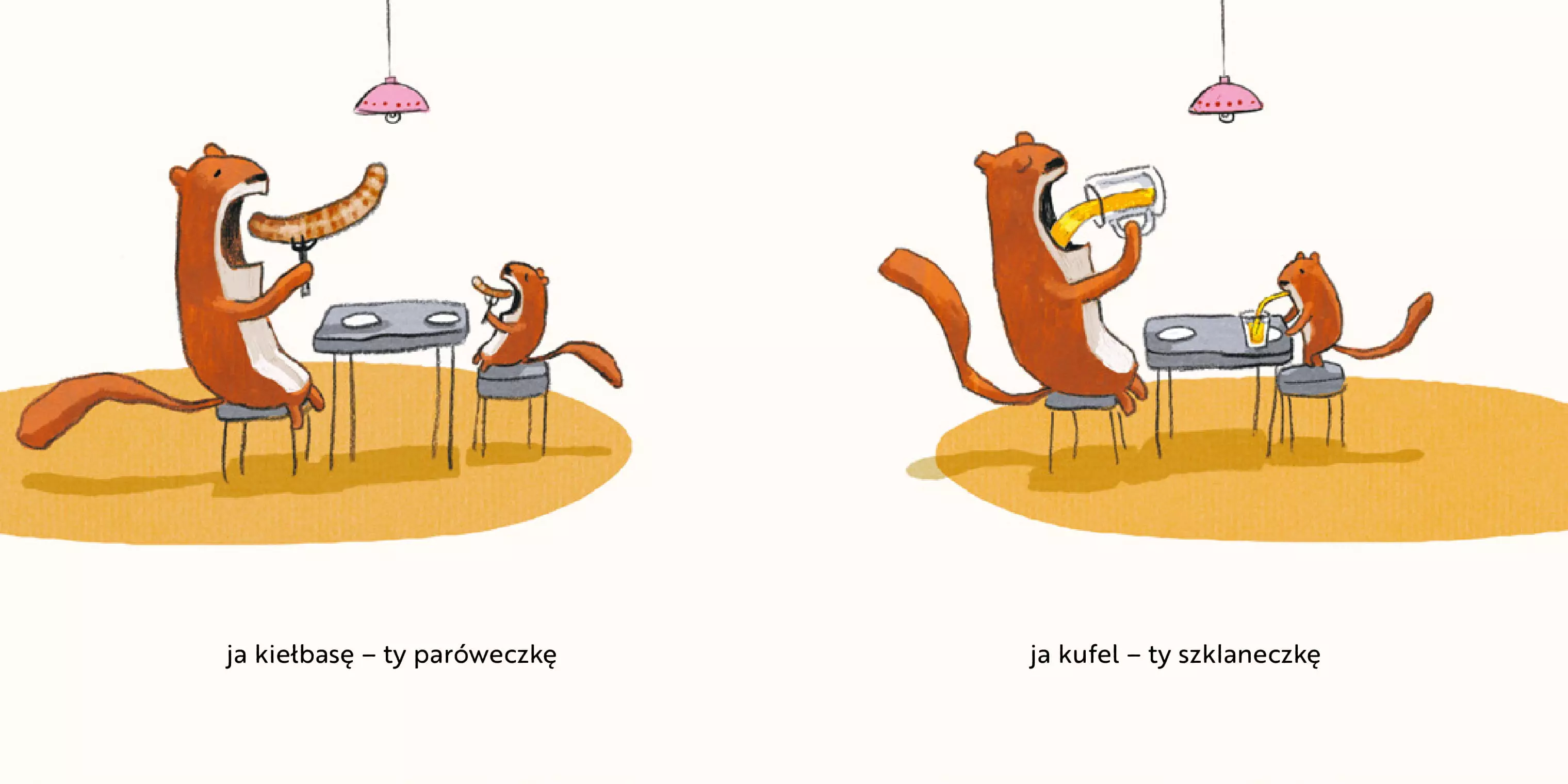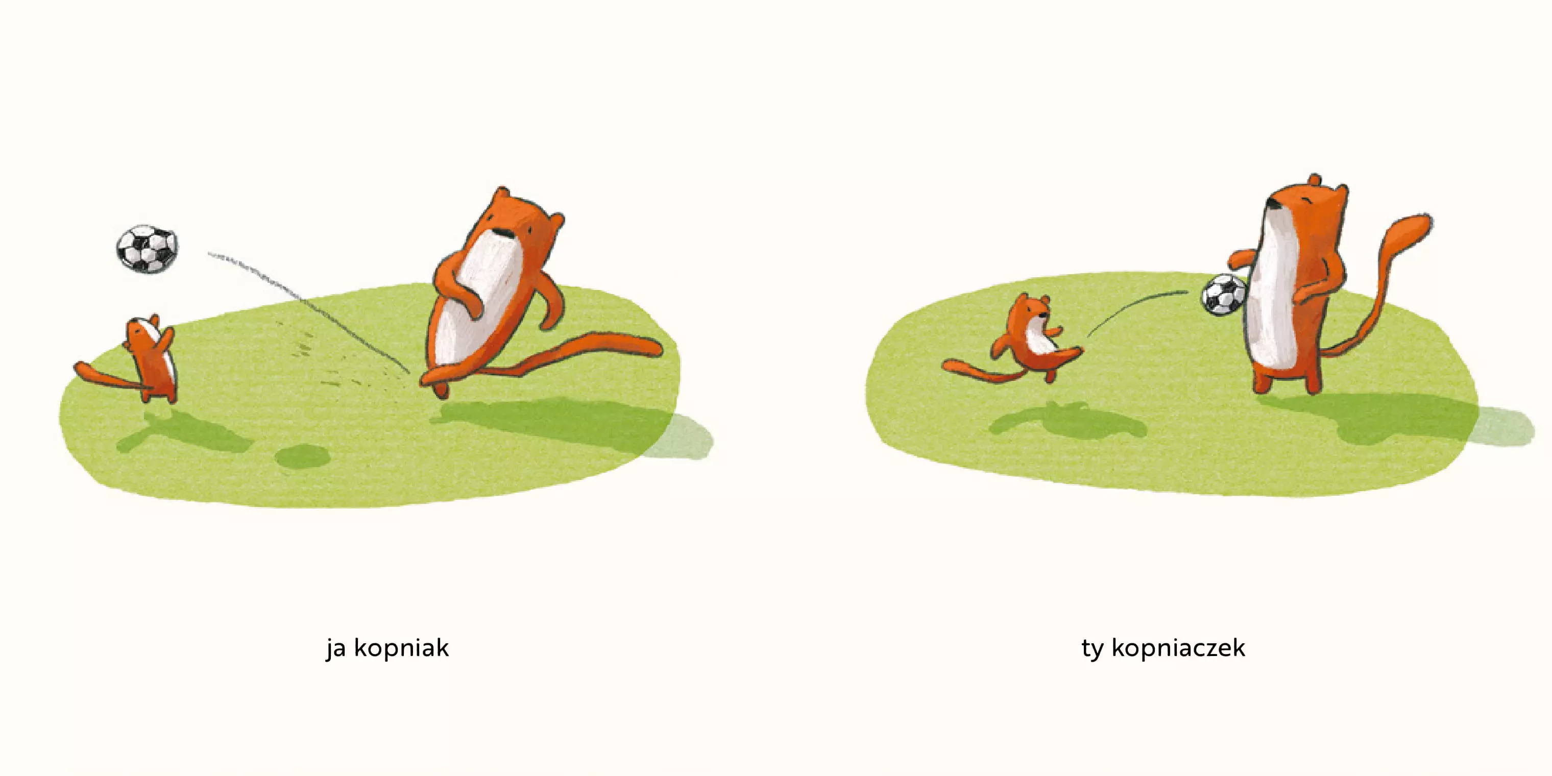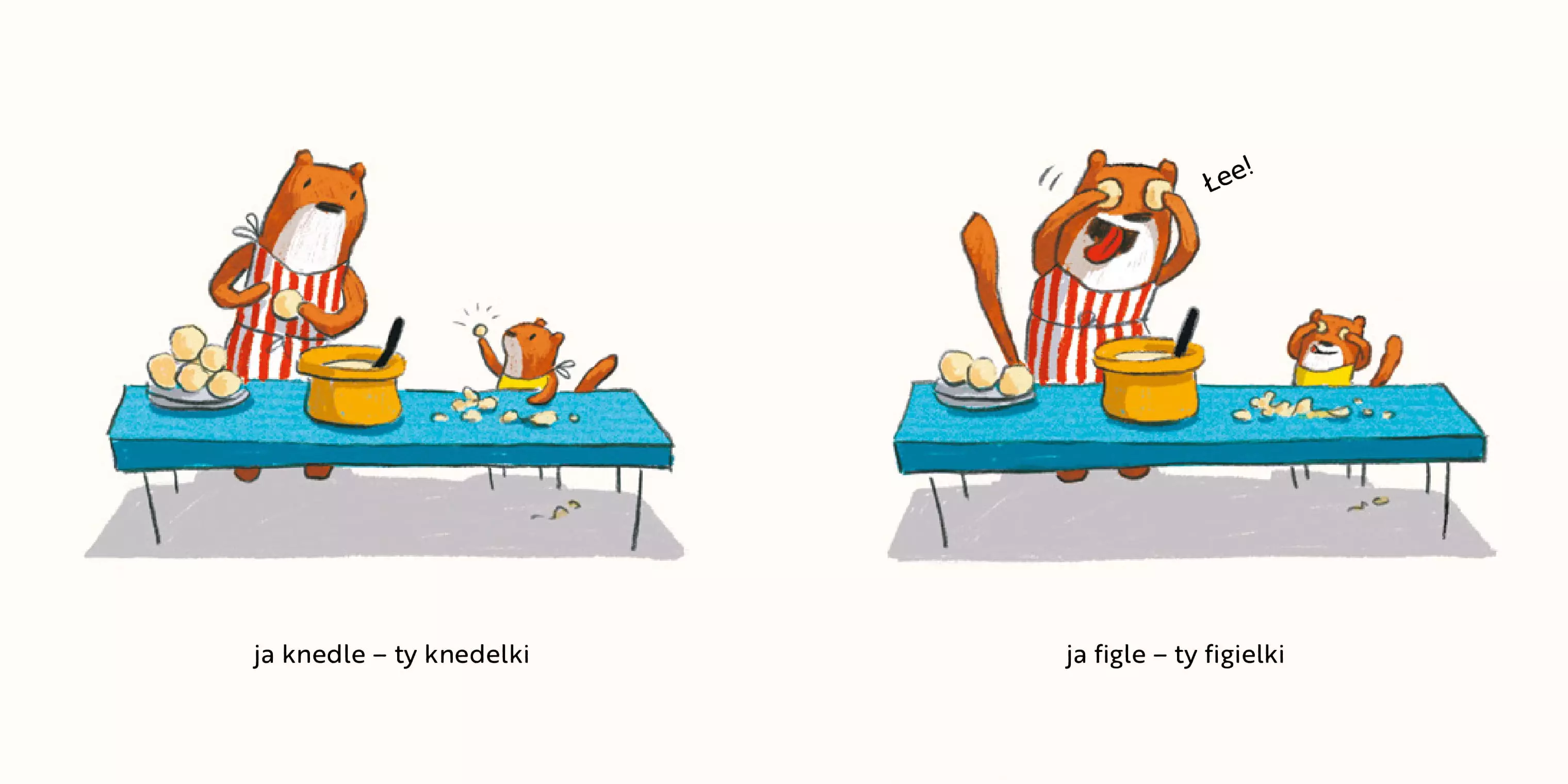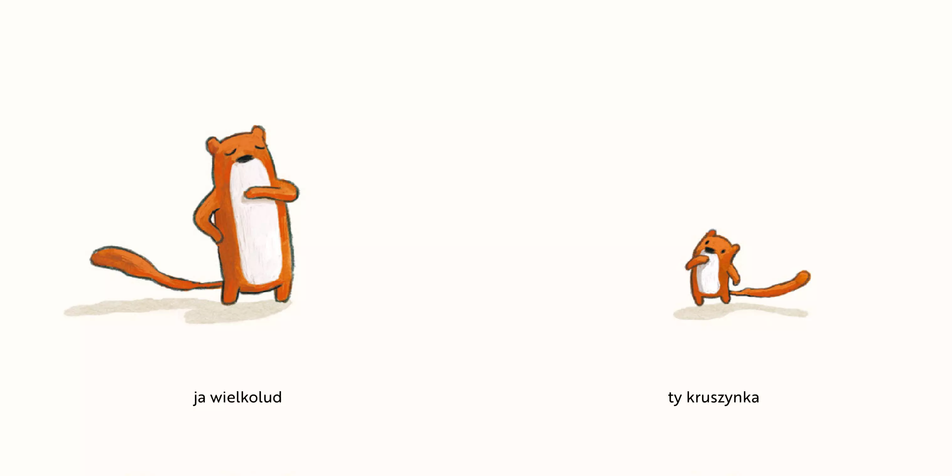 Dwie łasice, duża i mała, uwielbiają być razem, choć to wcale nie jest łatwe. Ta książka, jej dowcipny tekst i przezabawne ilustracje to kwintesencja rodzinnego, pełnego emocji, codziennego życia. Międzynarodowy bestseller o nas samych, o dużych i małych! Lilli L'Aronge (1979) studiowała komunikację wizualną na Weimar Bauhaus University. Ilustruje, projektuje i pisze książki dla dzieci i dorosłych. Mieszka w Münster. Jej autorska książka Ich gross du klein, czyli Ja wielkolud ty kruszynka została przetłumaczona na 11 języków.