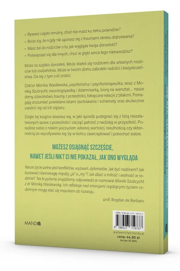 „Nasze życie pełne jest konfliktów, wyzwań, dylematów. Jak być rodzicem? Jak budować równowagę między ja a my? Jak dbać o miłość i wolność w rodzinie? Na te pytania znajdziemy odpowiedzi w rozmowie Moniki Szubrycht z dr Moniką Wasilewską.” – prof. Bogdan de Barbaro