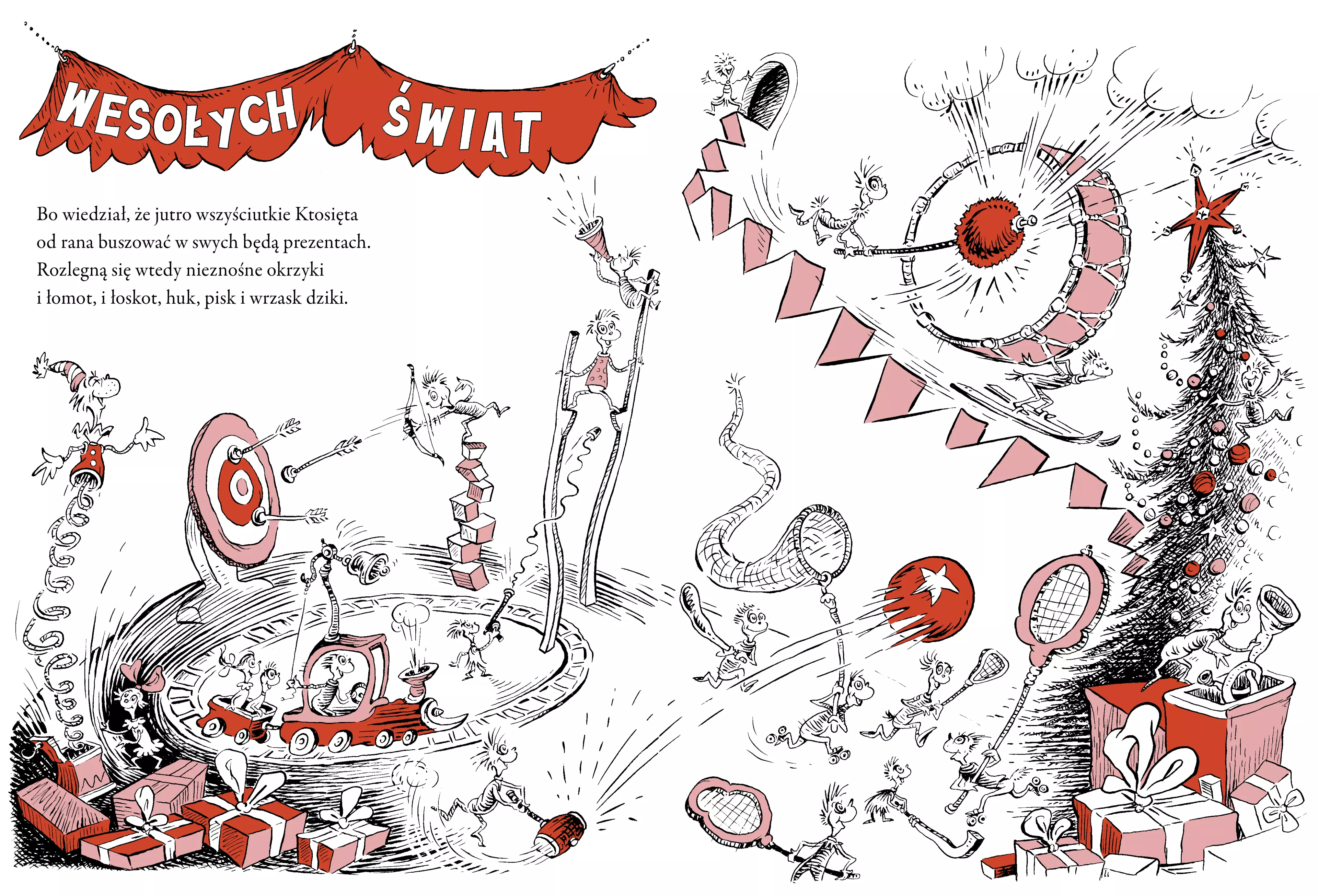 Każdy mieszkaniec Ktosiowa bardzo lubił czas Świąt. A Grinch, co żył za Ktosiowem? Ależ skąd! Jak Grinch skradł Święta! Dra Seussa po raz pierwszy w języku polskim, w mistrzowskim tłumaczeniu Michała Rusinka! Dzięki zabawnym rymowankom i wyjątkowej grafice poznacie historię zrzędliwego Grincha i jego szelmowskich prób ukradzenia Świąt mieszkańcom Ktosiowa!