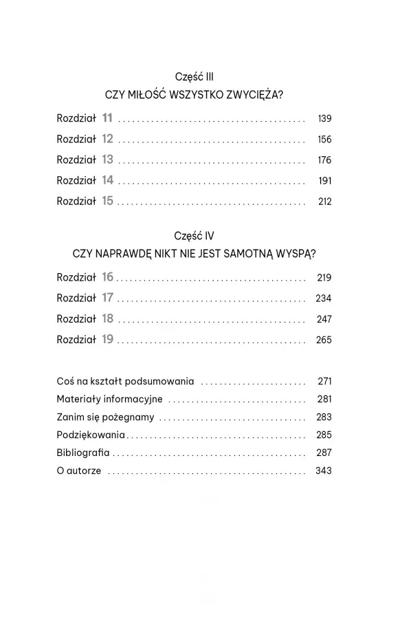 Relacje budują lub rujnują nasze życie Eric Barker wnikliwie zbadał konwencjonalną wiedzę o związkach międzyludzkich, wplatając zdumiewające fakty naukowe w porywającą narrację. Wszystko po to, aby pomóc ci zbudować lepsze przyjaźnie, na nowo rozpalić uczucia i stworzyć satysfakcjonujące więzi ze wszystkimi osobami obecnymi w twoim życiu. To napisany z humorem poradnik o sztuce budowania lepszych relacji, panaceum na jedne z największych bolączek naszych czasów – narastający dystans emocjonalny i samotność. Jednak autor książki stwierdza bez ogródek: „Znienawidzisz mnie […] nie jest to typowa książka o związkach, optymistyczny poradnik, w którym autor mówi to, co czytelnik chce usłyszeć, żeby poprawić mu samopoczucie i zaoszczędzić dyskomfortu. Nie wszystko, co przeczytasz, przypadnie ci do gustu… Ostrzegam zawczasu. Prawda cię wyzwoli, ale najpierw porządnie cię wkurzy”. Ludzie próbują dogadywać się ze sobą od tysięcy lat i wciąż nie potrafią robić tego dobrze. Barker analizuje popularne maksymy i sprawdza, czy można na nich polegać z naukowego punktu widzenia. Dowiesz się więc: „Czy można oceniać książkę po okładce?” „Czy miłość wszystko zwycięża?” „Czy prawdziwych przyjaciół poznaje się w biedzie?” „Czy człowiek naprawdę nie jest samotną wyspą?” Autor dogłębnie analizuje każdy problem, zanim wyda ostateczny werdykt. Prawda, którą ujawnia może całkowicie zmienić sposób, w jaki nawiązujesz relacje z ludźmi. Jedyne, co naprawdę liczy się w życiu, to nasze relacje z innymi. Najszczęśliwsze chwile są związane z ludźmi. Te najbardziej bolesne również. „Całą dziedzinę nauk społecznych można podsumować jednym zdaniem: ludzie są dla nas ważni. Niezależnie od tego, jak nam się wiedzie, relacje z innymi mają decydujący wpływ na nasze samopoczucie i poziom szczęścia. W tej humorystycznej i przenikliwej książce Eric Barker podaje w pigułce całą współczesną wiedzę o tym, co robić, by nasze najważniejsze relacje rozkwitały. Ta książka przywróci kolory twojemu życiu”. — Daniel H. Pink, autor bestsellerów Kiedy, Drive oraz Jak być dobrym sprzedawcą